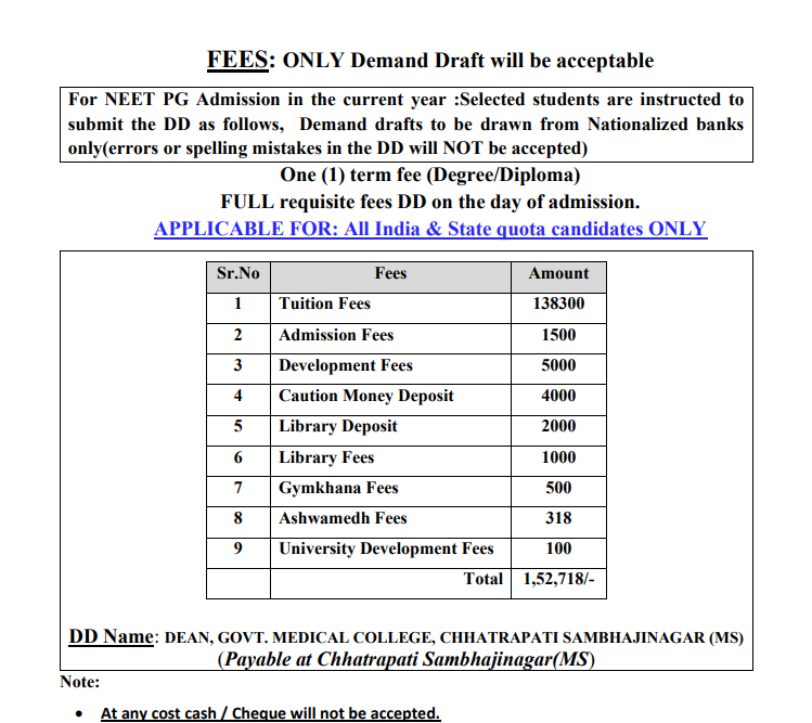 GMC Aurangabad Hostel Fee is ₹ 5,036.
