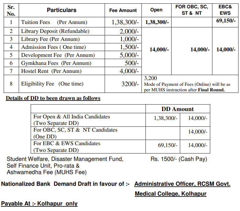 - Candidates need to pay ₹ 1.56 Lakhs in the first year.