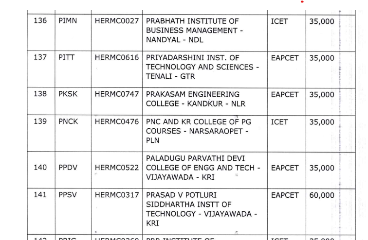 Priyadarshini Institute of Technology & Science Guntur MBA Marketing Fees