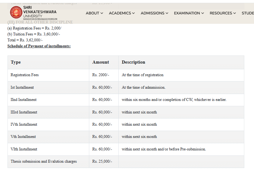 | Fee Type | Total Amount (INR) |