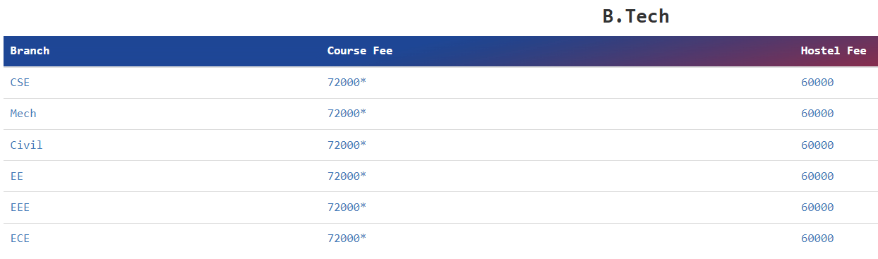 | Tuition Fees | ₹72000 | ₹72000 | ₹72000 | ₹72000 |