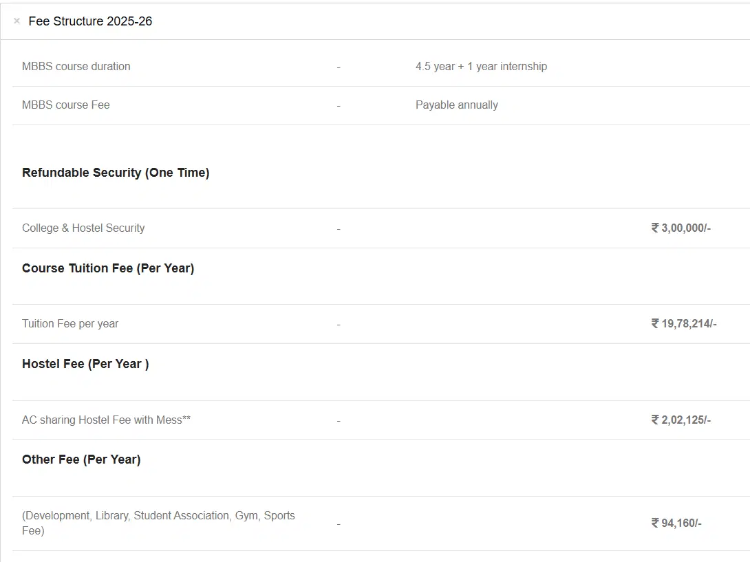 - Candidates need to pay ₹ 23.72 Lakhs in the first year.