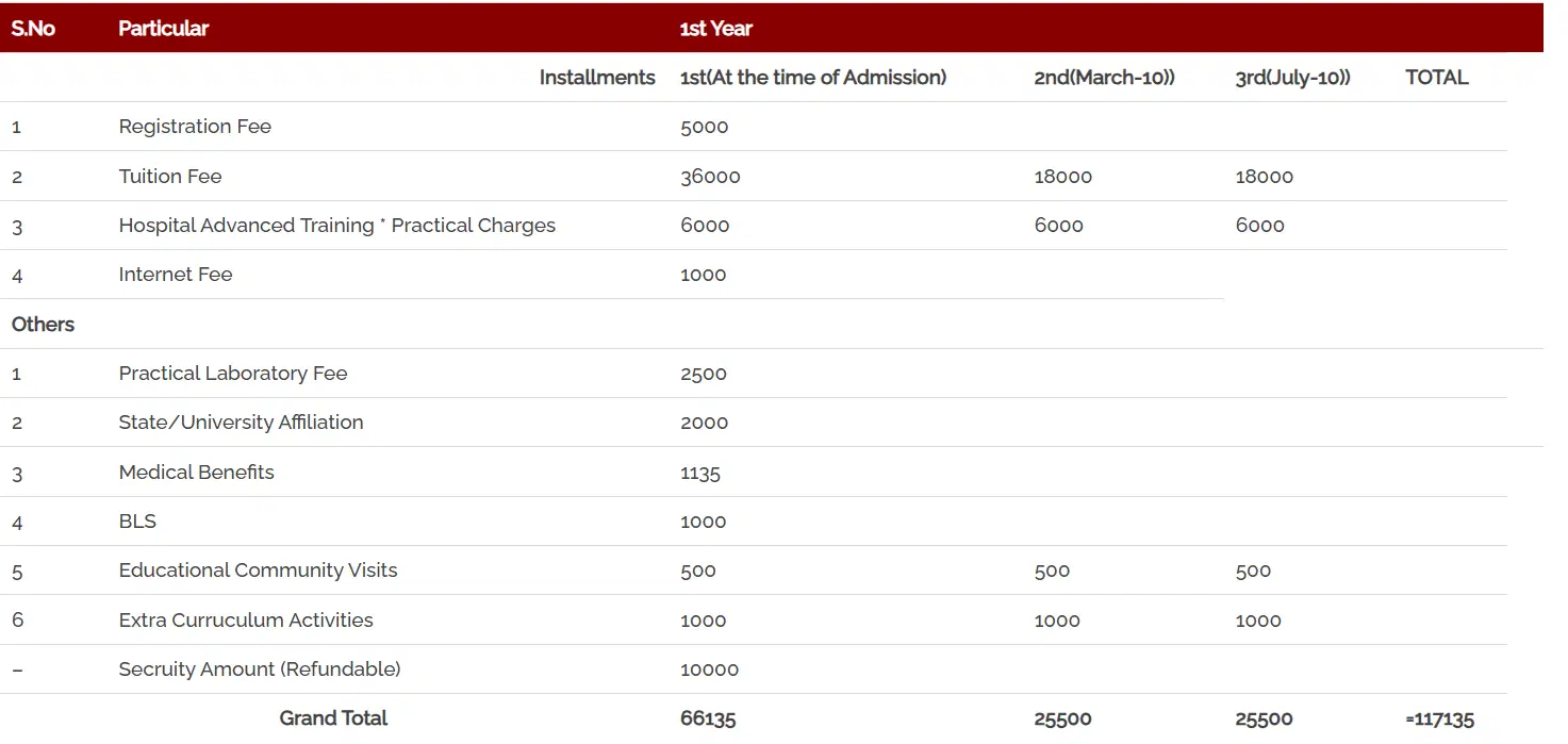 SRMS Bareilly B.Sc (Nursing) Nursing fees 2025 is ₹ 4.31 Lakhs for the entire course duration.