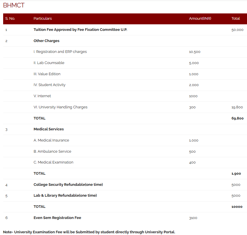 | College | BHMCT Total Fees |