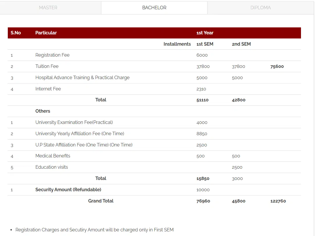 The course requires candidates to have completed their 10+2 education with Physics, Chemistry, and Mathematics from a recognized board. Admission involves passing an entrance exam and an interview, with necessary documents including mark sheets, a transfer certificate, a character certificate, and ID proof. The college operates from 8:00 am to 4:20 pm, offering a supportive learning environment with qualified faculty. Courses last three years and six months, with annual fees as follows: Paramedical - Rs 1,10,000, MBBS - Rs 20,00,000, B.Tech and B.Pharm - Rs 1,30,000, and MBA and MCA - Rs 1,40,000.