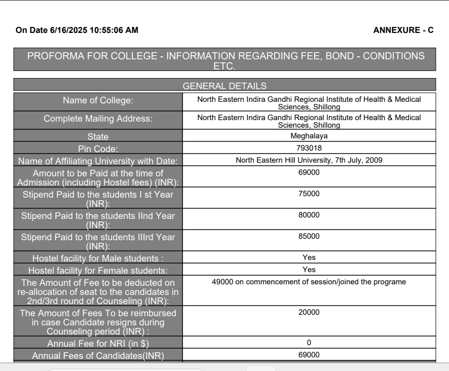 NEIGRIHMS Hostel Fee is ₹ 5,000 to 12,000.