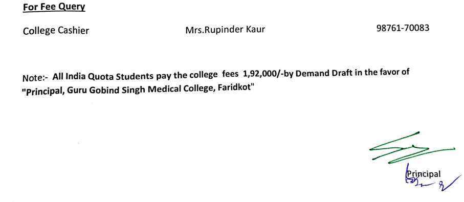 Earlier, MBBS fees at Guru Gobind Singh Medical College & Hospital Faridkot was ₹ 9.15 Lakhs (in 2024) for the entire course duration. This shows a fee increase of ₹ 45,000 over the year.