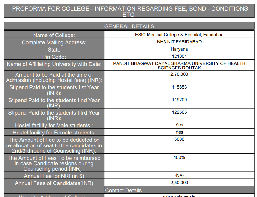 ESIC Faridabad Hostel Fee is ₹ 20,000.