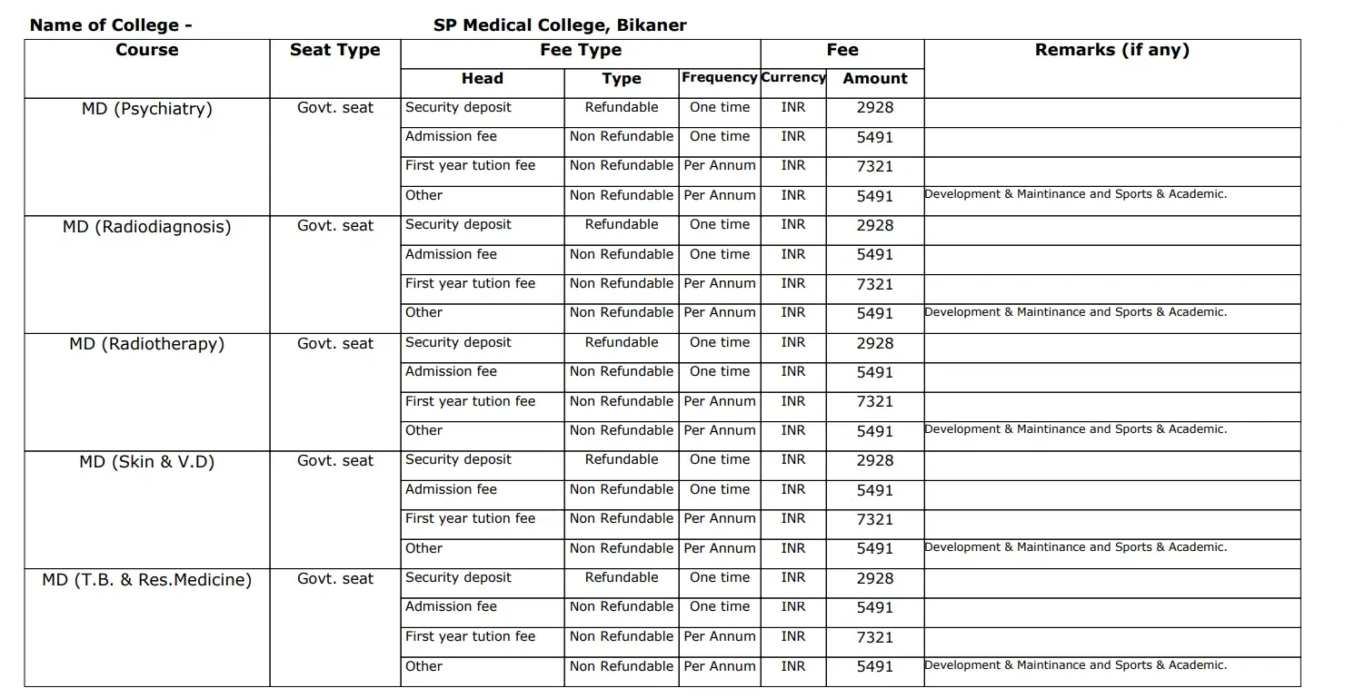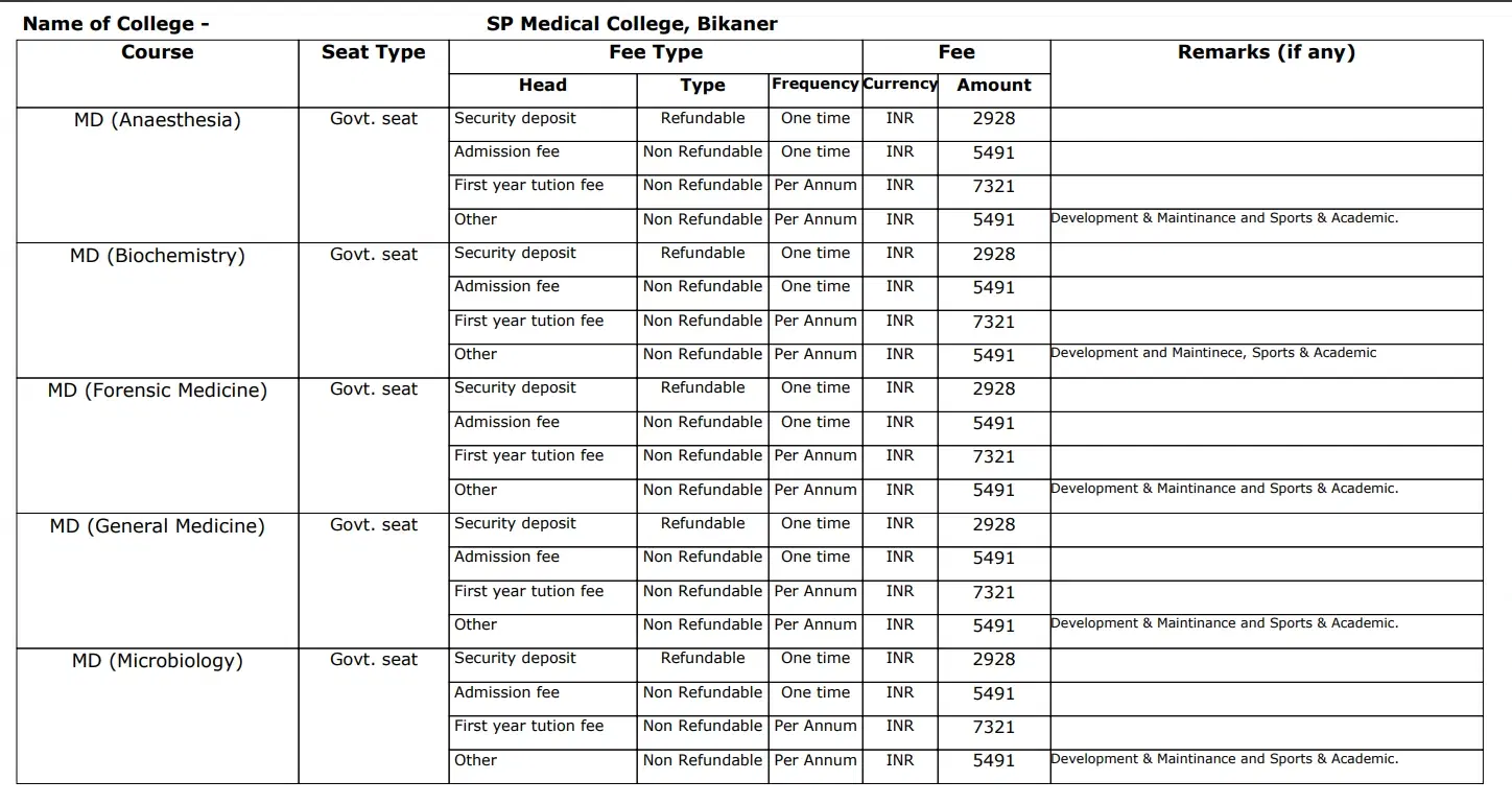 The minimum eligibility for admission to M.D Anaesthesia at SPMC Bikaner is MBBS with 50% + NEET PG. Candidates are allotted seats based on NEET-PG.