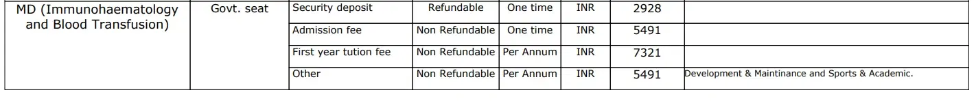 | Fees | Year 1 (in INR) | Year 2 (in INR) | Year 3 (in INR) |