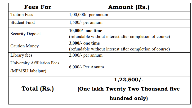 - Candidates need to pay ₹ 1.24 Lakhs in the first year.
