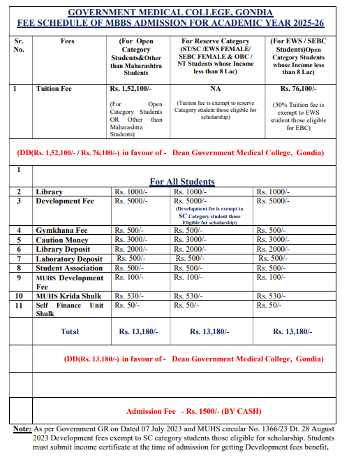 Find detailed Government Medical College Gondiya MBBS fees, eligibility, admission dates, cutoff and ranking below.