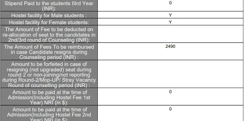 It was ranked first among government medical colleges for the 2023-24 year. The fee structure is affordable, with an annual tuition fee of Rs. 10,000 and an admission fee of Rs. 25,000. Hostel residents pay Rs. 2,500 annually plus Rs. 2,200 monthly for accommodation and mess. The entire 5-year MBBS program costs around Rs. 1,35,375. The college ensures a 100% placement rate for MBBS graduates, with a compulsory 1-year internship and a 1-year rural posting.