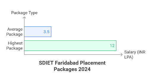 SDIET, Faridabad. Placement data for the year 2025 has not yet been released by the college. Only the top recruiting companies have been announced by the college. As per the 2024 reports, the average package earned by the students was INR 3.5 LPA, and the highest package was INR 12 LPA.