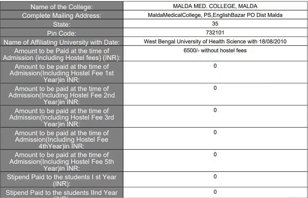 Malda Medical College is one of the worst colleges for pursuing medical. It was previously a district health care hospital and there were no plans of turning it into a medical college. It lacks proper medical equipment. The students of this college are people who do not have the money and did not achieve the rank required for studying in government medical colleges.