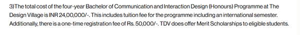 The Design Village Noida B.Des {Hons.} Communication Design fees 2026 is ₹ 24.5 Lakhs for the entire course duration.