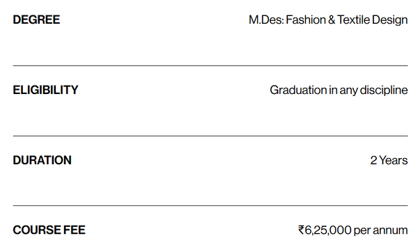 - The total fees for M.Des Fashion & Textiles is ₹ 13 Lakhs.