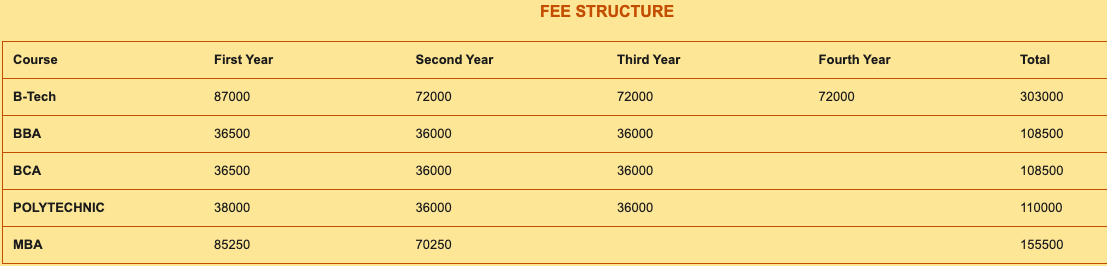 | Fees | Year 1 (in INR) | Year 2 (in INR) | Year 3 (in INR) |