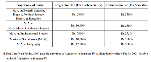 M.A Rabindra Sangeet Fees at Directorate of Distance Education Rabindra Bharati University Kolkata covers a range of expenses, including tuition fee, course materials, and access to campus facilities.