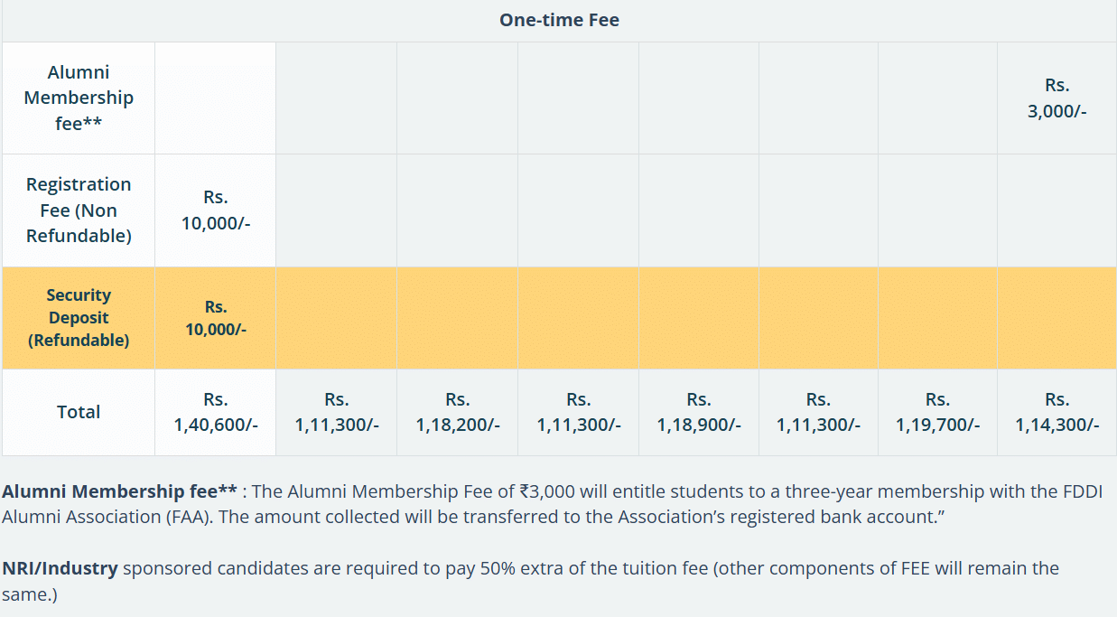 | FDDI Chandigarh | ₹ 9.43 Lakhs |