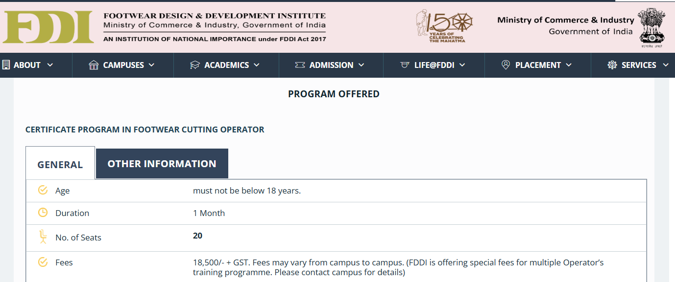 FDDI Amethi Certification Footwear Cutting Operator: Fees 2025, Course Duration, Dates, Eligibility