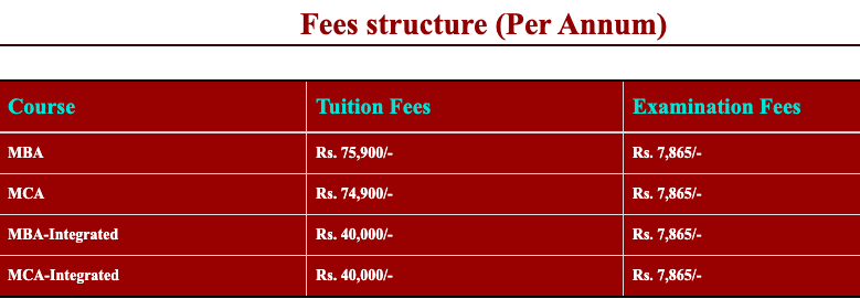 Fees can be paid in installments with separate examination fees of about INR 2,000 per semester.