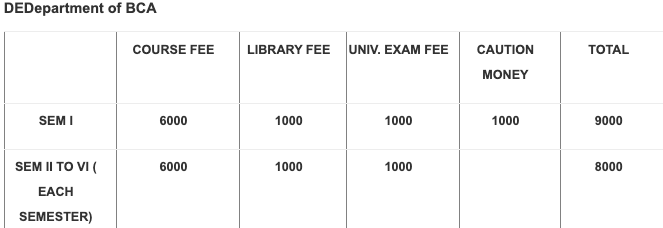 The program costs Rs. 48,000, which is spread across six semesters at Rs. 8,000 per semester. Each semester also includes an examination fee of Rs. 1,035. At the time of admission, a total fee of Rs. 8,920 is required, covering the initial costs. Notably, the fees remain consistent throughout the course without any increases.