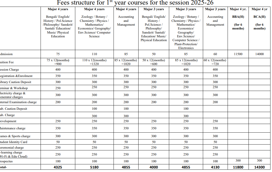 Netaji Mahavidyalaya Hooghly BCA {Hons.} is offered as 3 Years Full Time program. The minimum eligibility criteria for BCA {Hons.} is 10+2. The total fees for Netaji Mahavidyalaya Hooghly BCA {Hons.} in 2025 is ₹ 84,300 for the complete course duration, which includes total tuition fees of ₹ 84,300. Earlier, the fees in 2019 - 2020 for BCA {Hons.} was ₹ 84,000.