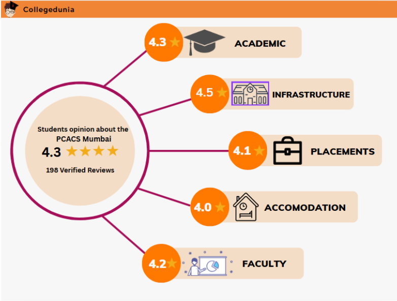 Ans. Yes, PCACS Mumbai has a strong placement cell. In 2024, over 100 companies participated in the placement drive at PCACS Mumbai. About 80–85% of eligible students got placed in top companies like TCS, Wipro, Infosys, and ICICI Bank. The median package for UG students at PCACS Mumbai was INR 2.5 LPA.