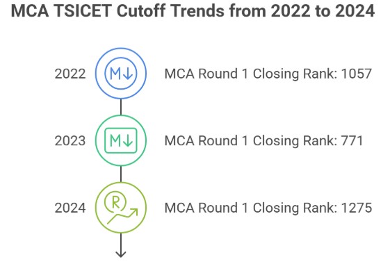University College of Science cutoff 2025 has not been released. But, applicants can get a notion by looking at the MCA TSICET Cutoff trend from 2022 to 2024 for General Category listed below: