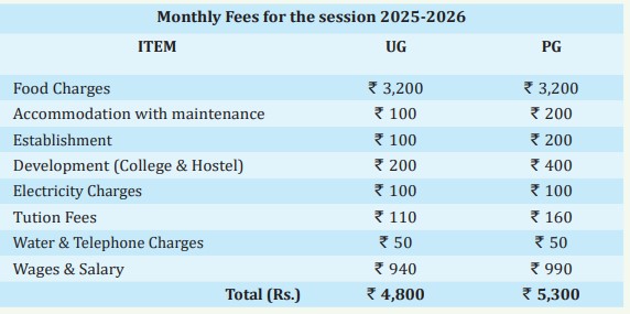 The hostel is a mandatory facility for students in this residential college, comprising five buildings, with four for UG and PG students and one for PhD students. Rooms accommodate 3-4 students, each provided with a bed, study table, chair, and almirah. The infrastructure is rated moderately, with 24/7 electricity and water supply, and study halls available for academic activities. The monthly fee, approximately Rs 3400-4000, covers meals, electricity, and other expenses.