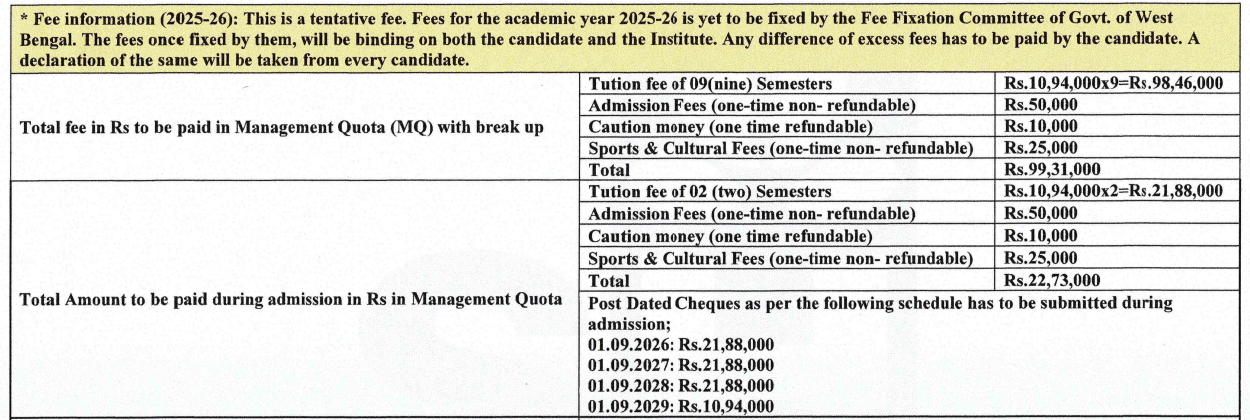 - Candidates need to pay ₹ 1.8 Lakhs in the first year.