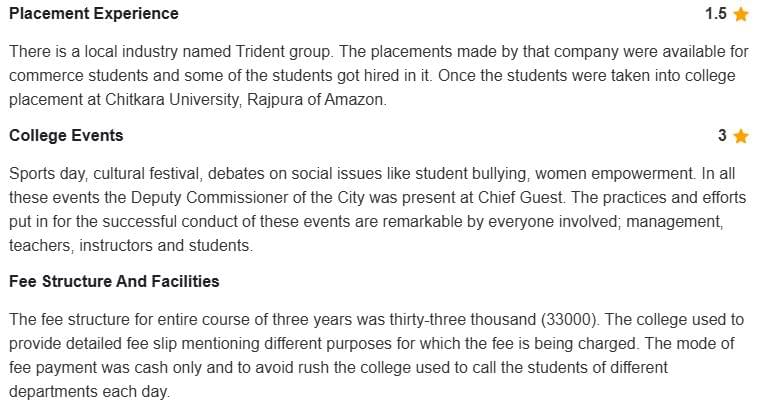 Ans. Yes, S D College Barnala provides hostel facilities to students and thus facilitates those who travel long distances. According to the student reviews, the hostel charges are approximately INR 12,000/year, and the mess charges are approximately INR 2,000/month. This adds to the total annual expense of about INR 32,000. Hostels come with simple facilities such as common rooms, study rooms and recreational facilities. Access to a gym and TV rooms in the hostel was also mentioned by the students. S D College Barnala, therefore, makes the stay of residents comfortable.