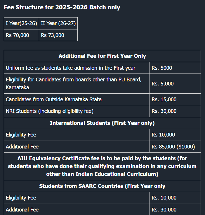 | Fees (2025 - 2026) | Year 1 (in INR) | Year 2 (in INR) |