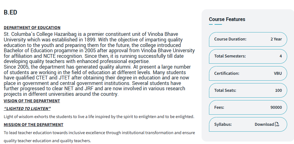 STCC Hazaribagh offers a total of 100 seats for B.Ed . Check STCC Hazaribagh Admission 2025