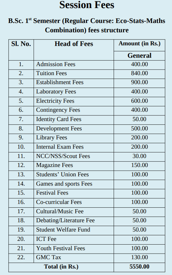 | Semester Wise Fees | ₹5550 | ₹5550 | ₹5550 | ₹5550 | ₹5550 | ₹5550 |