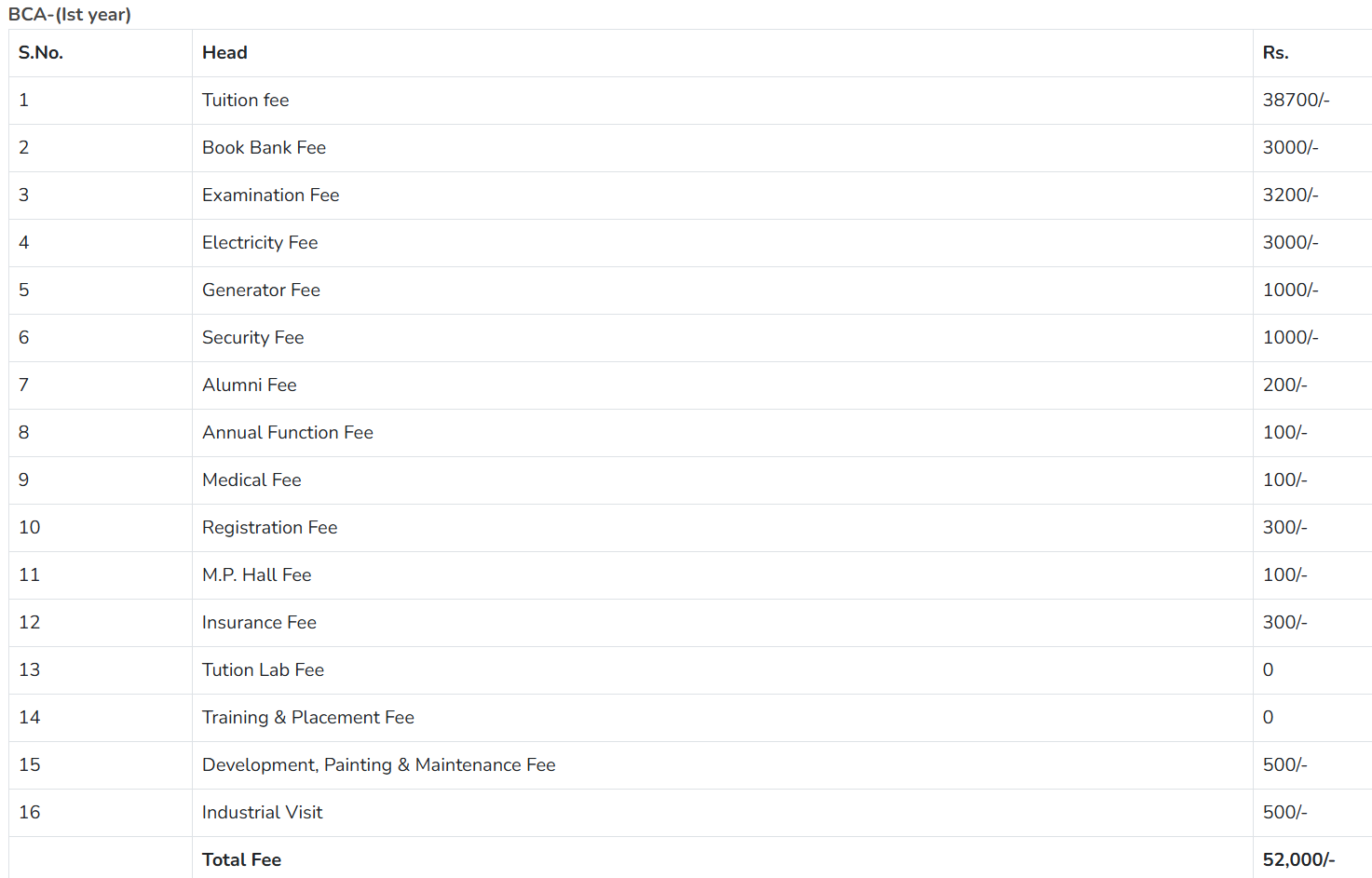 Rajarshi School of Management & Technology Varanasi BCA fees in first year is ₹ 52,000. The detailed fees is mentioned below.Rajarshi School of Management & Technology Varanasi Hostel Fee for Male is ₹ 23,000.
