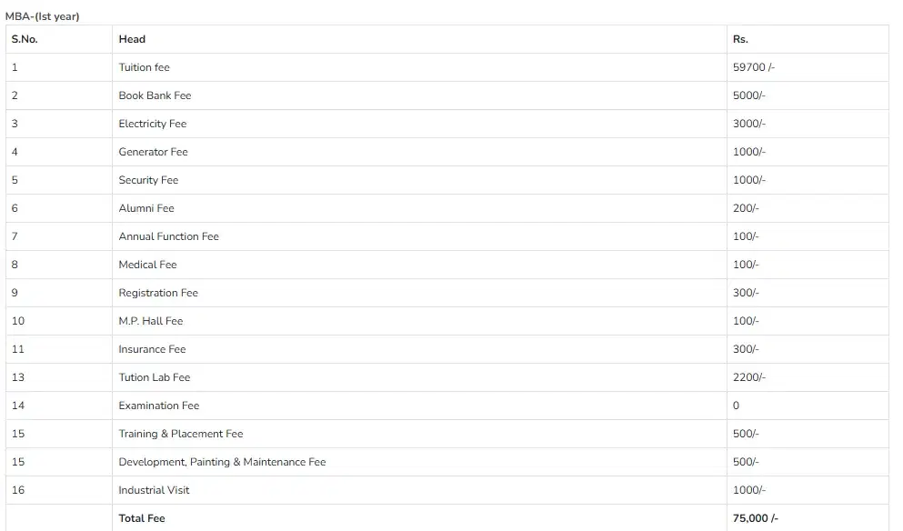 Rajarshi School of Management & Technology Varanasi MBA Human Resource Management fees in first year is ₹ 75,000. The detailed fees is mentioned below.Rajarshi School of Management & Technology Varanasi Hostel Fee for Male is ₹ 23,000.