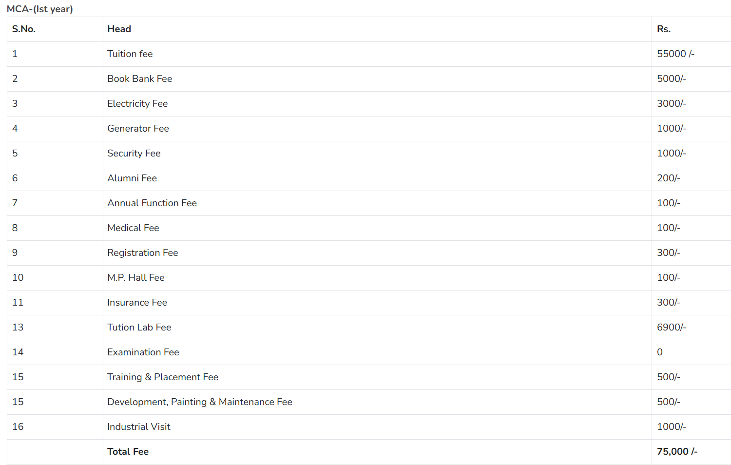 | Fee Type | Total Amount (INR) |