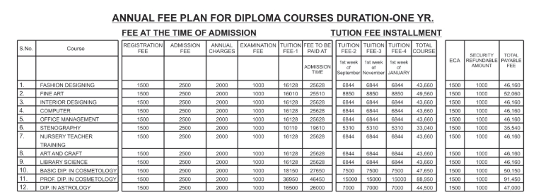 Diploma Astrology Fees at Janki Devi Vocational Centre covers a range of expenses, including tuition fee, course materials, and access to campus facilities.