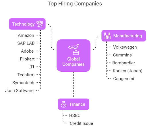 Pimpri Chinchwad College of Engineering and Research (PCCOER) offers robust placement opportunities, with over 70-95% of students securing positions annually, particularly in the IT department, where placement rates reach nearly 100%. Key companies visiting include Capgemini, TCS, Wipro, Accenture, Amazon, and more, offering roles with average packages around INR 4-6 LPA and the highest reaching up to INR 64 LPA from companies like Amazon and Uber. Notably, some students have received international placements in Japan, with packages between INR 17-20 LPA.