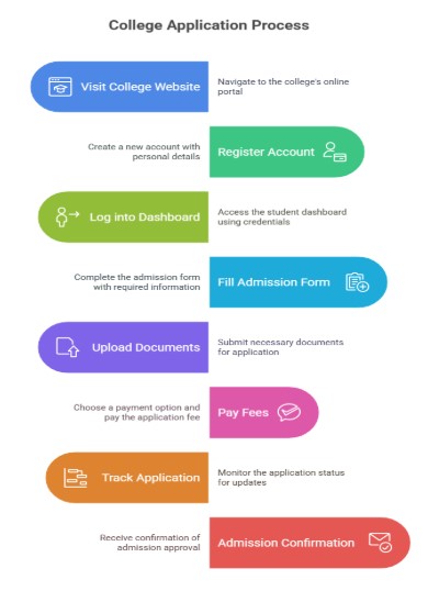 - Track your application process. Once the college approves your application, your admission is confirmed.