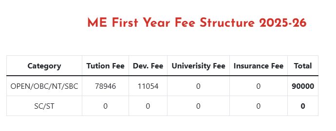 PVPIT Pune ME Machine Design fees in first year is ₹ 0. The detailed fees is mentioned below.