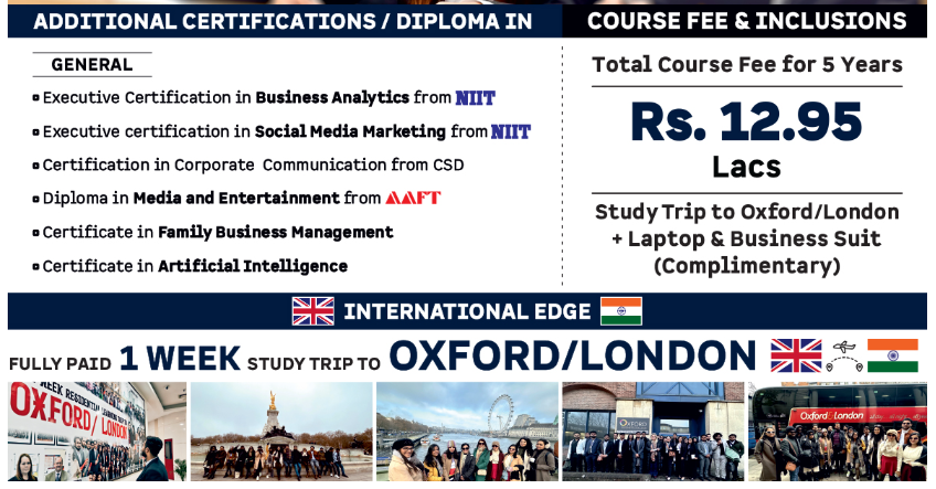 The official course name is Integrated Program In Management (IPM) BBA + PGDM. This course contains 1 week of fully paid study trip to OXFORD/LONDON.