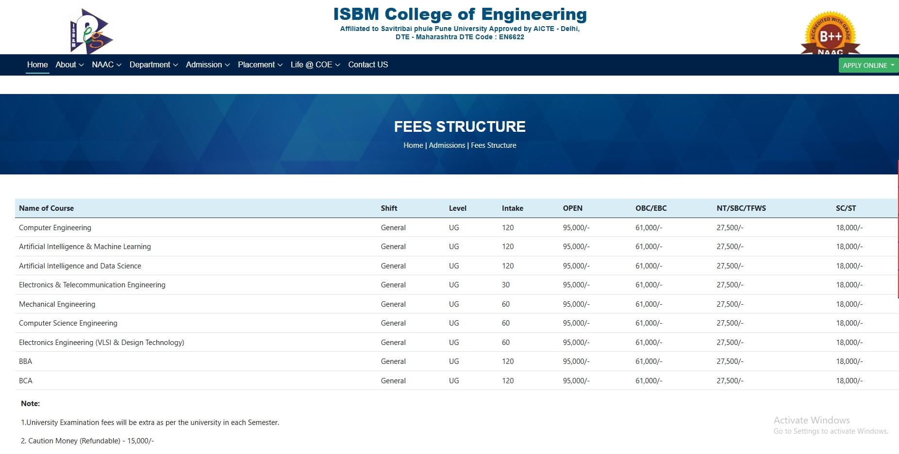- For OBC category students, the total fees is ₹ 1.98 Lakhs.