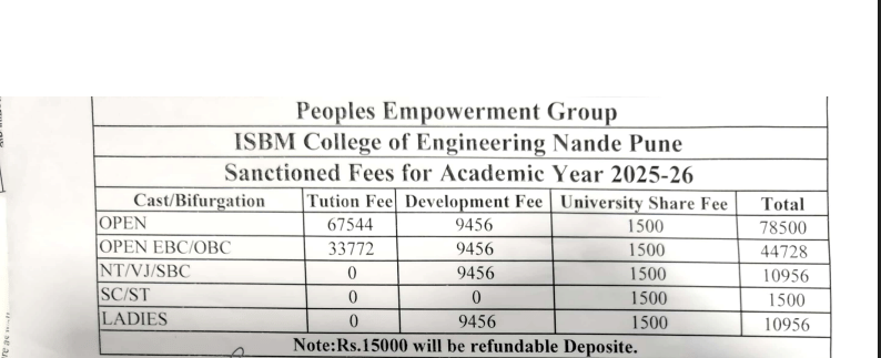 Earlier, BE {Lateral} Electronics & Telecommunication Engineering fees at ISB&M College of Engineering was ₹ 2.49 Lakhs (in 2023) for the entire course duration. This shows a fee increase of ₹ 1,500 over the year.