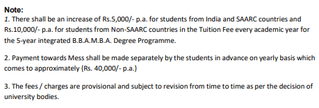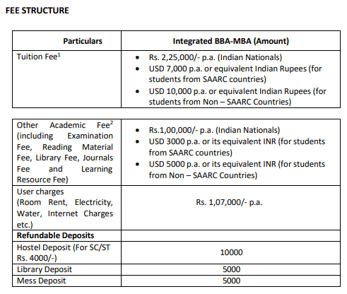 - The total fees for BBA + MBA is ₹ 22.3 Lakhs.
