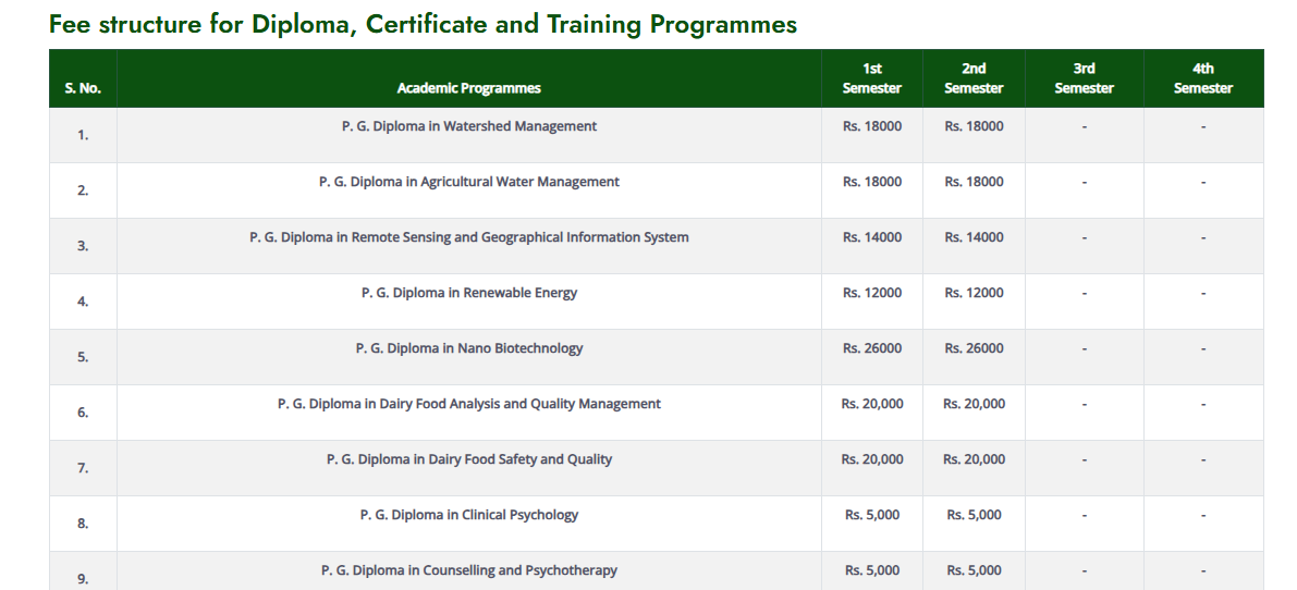 Vaugh Institute of Agricultural Engineering And Technology Allahabad offers a total of 10 seats for PG Diploma Renewable Energy. Candidates must have at least Graduation to be eligible for admissions.