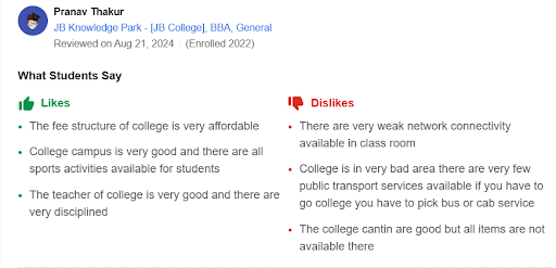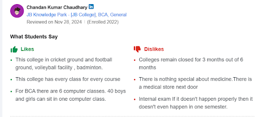 - JB College Faridabad Students' Reviews