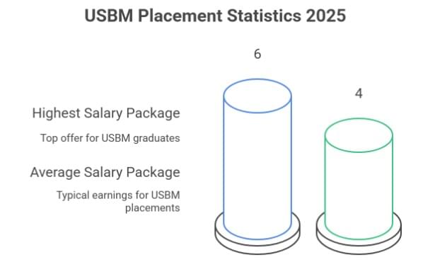 USBM has released its placement report for 2025. The highest salary package offered during USBM Placement was INR 6 LPA, while the average package was INR 4 LPA, as per research. 1800+ students got good placements, and there have been 200+ corporate tie-ups. The top recruiters for USBM Placements are NIIT, QSpiders, Vodafone, JustDial, Nexa, Oyo, Oppo, Reliance, Tech Mahindra, Calvin Klein, Kotak Life, Asian Paints, IBM, DCB Bank, ICICI Bank, India Mart, VIPs, PhonePe, P&G, and Muthoot.